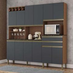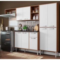 Isto inclui, principalmente, armário gaveteiro e armário de prateleiras. E, se possível, é interessante ter gavetões para panelas também.