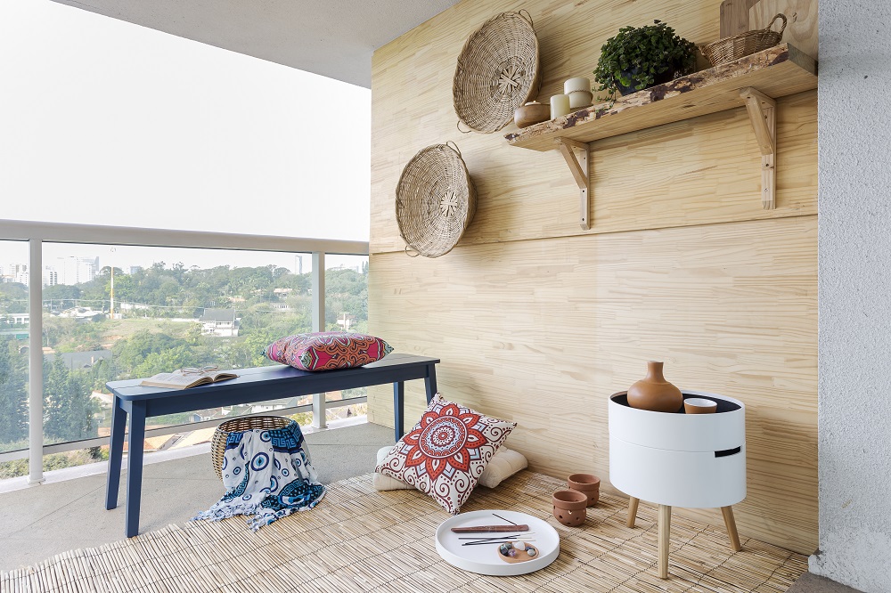 A aposta fica nas diferentes texturas, estampas e cores, mas sem perder o foco nos itens de origem natural e no conforto carregado – quase exagerado. Puffs, tapetes e almofadas ganham destaque junto com peças vintage e sustentáveis.